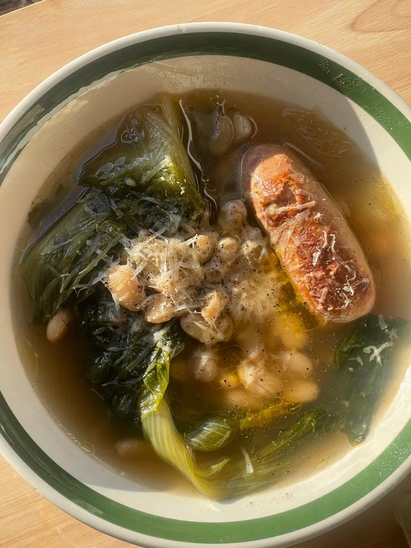& beans and I think I’m long overdue for a pot of it to be simmering in my kitchen. This traditional Italian dish is traditionally served as a side dish without meat, and often with less liquid, but I love adding sausage and extra broth to turn it into a full meal, as my mom often did for us growing up. It's an incredible cozy dish that tastes the way a warm hug feels. It’s nostalgic for me and reminds me of home, and I hope it will be for you, too! Add it to the repertoire and break it out whenever you need comfort.
